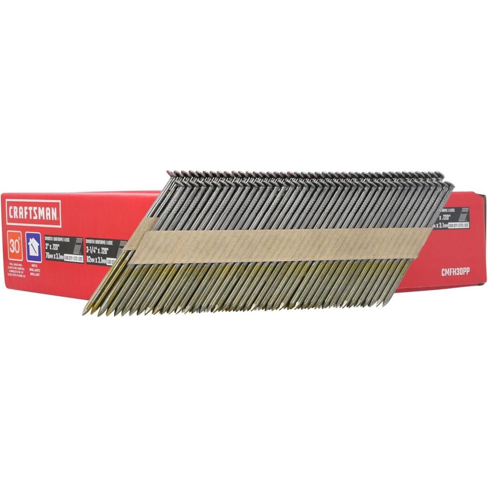CRAFTSMAN Framing Nails Paper Collated Smooth 30 Degree, 3-1/4 inch x 0.12 inch and 3 in x 0.12 inch, 500 Qty Each (CMFH30PP)